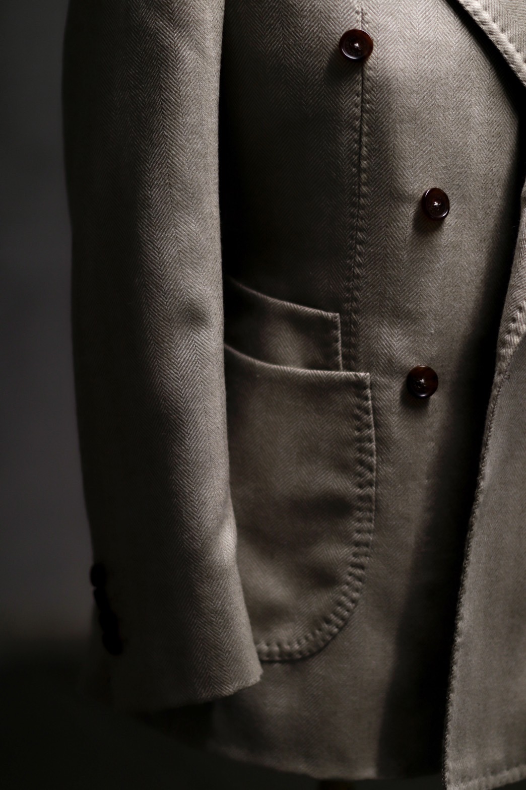ダブルブレストにダブルアウトパッチポケットが最高に美しい。ダブルアウトパッチポケットとダブルステッチの相性も最高です。