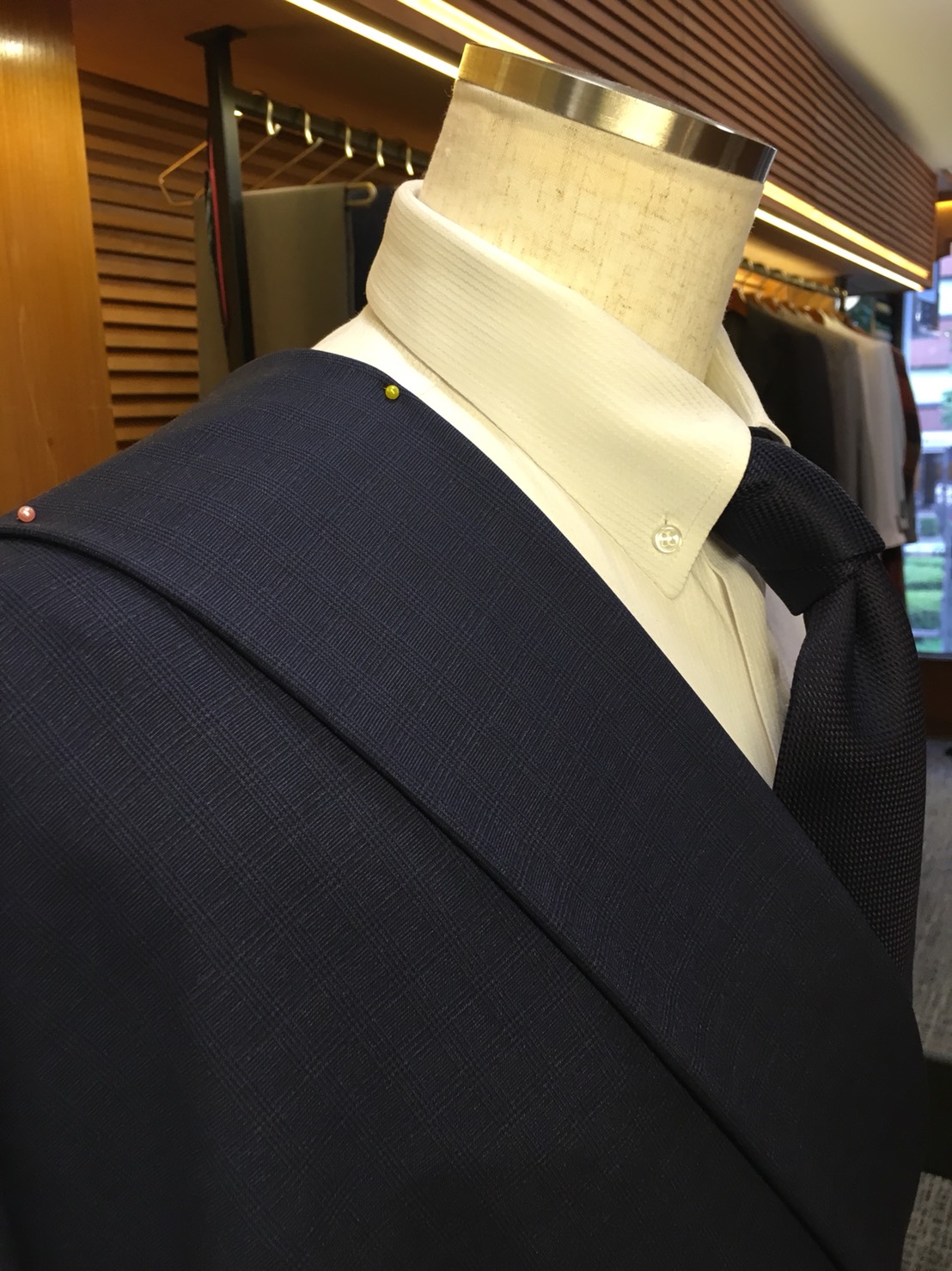 続いて小柄グレンチェックの紺生地 これもカシミア昆の素晴らし手触りの布です。