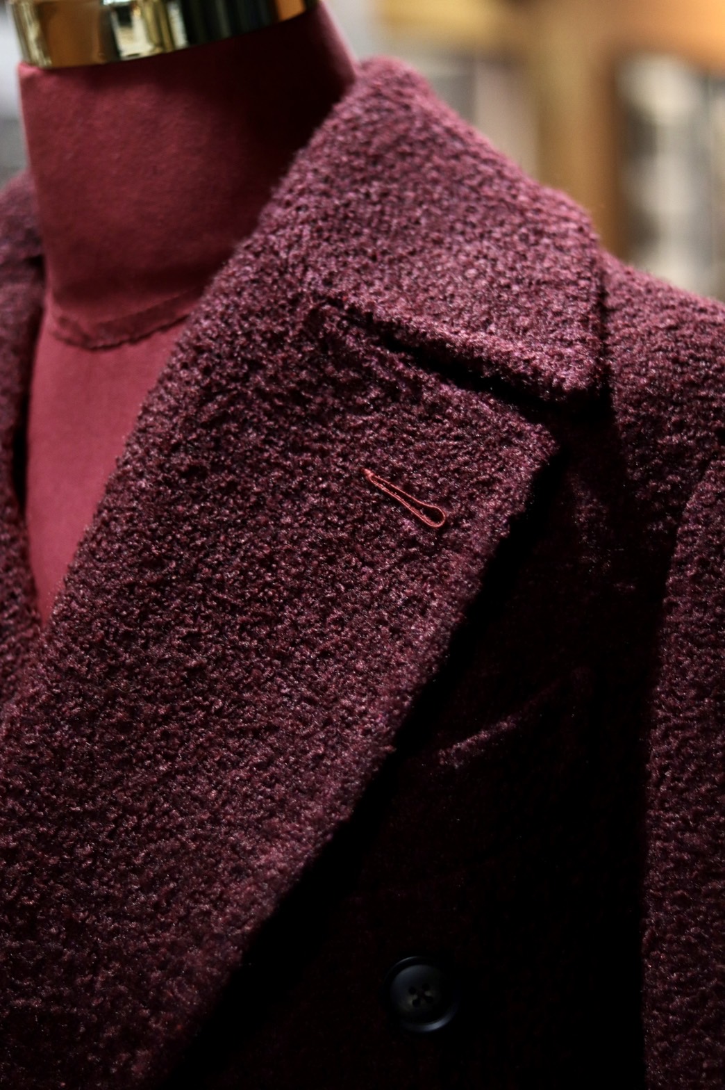 さすがイタリアです。まさにナポリの街並みに映えるエンジ色のコートが完成しました。