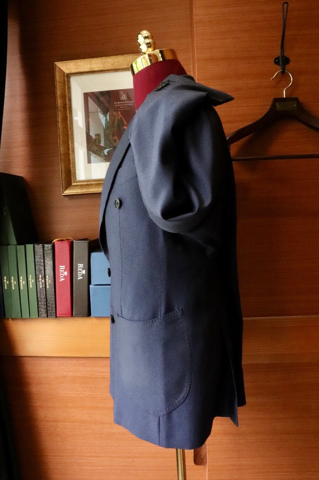 この布生地をジャケットに選んだお客さんは、かなりのネイビーの目利き。いつもいろんなネイビーでジャケットやスーツを作るのですが、今回の布生地には「こんな布生地は見たことないねー。」と大絶賛でした。