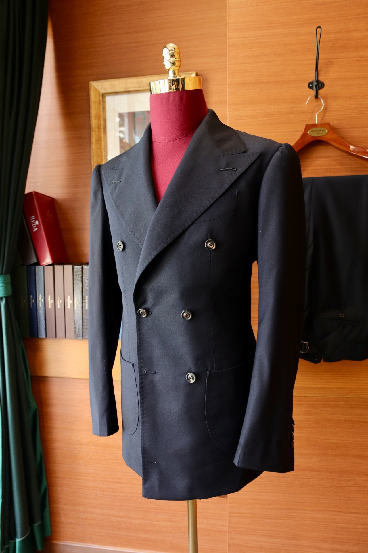 MICHELE &shin origainalのネイビー無地で作成した、3シーズン用のダブルスーツです。