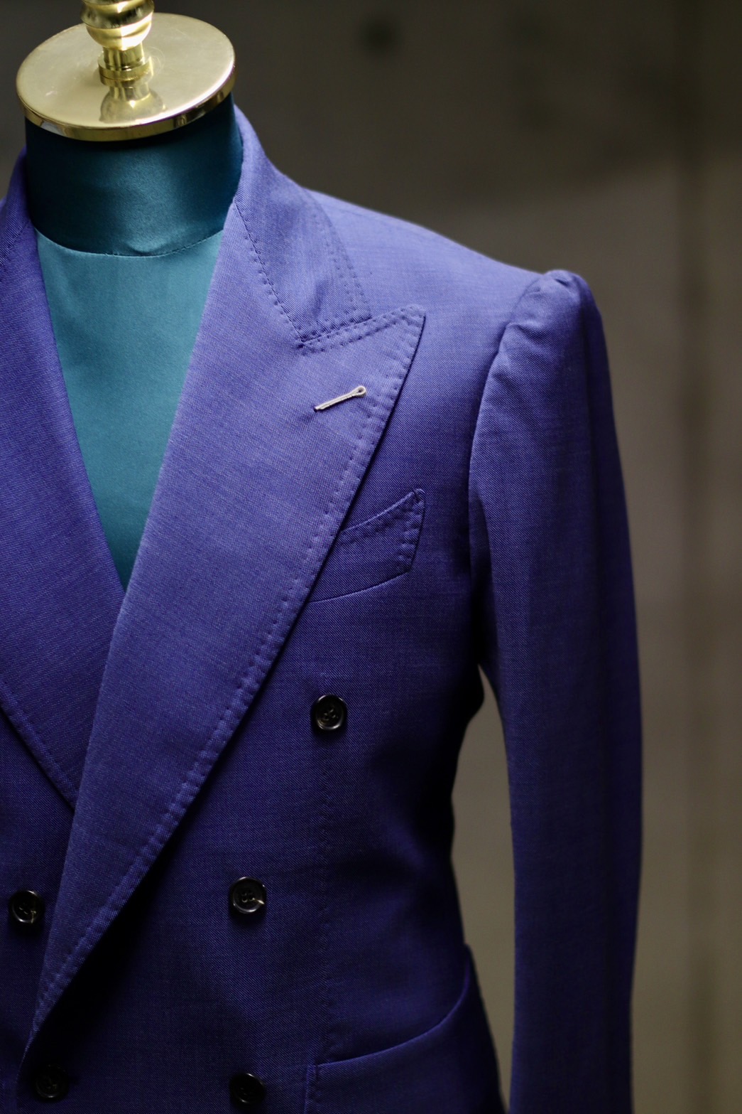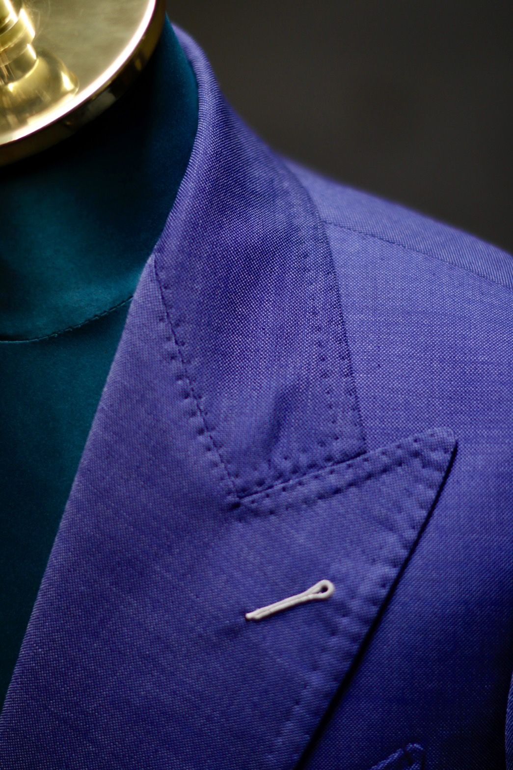 今回のスーツはそんなハンドメイドの良さが詰まったスーツです。ハンドメイドならではのデザインコンセプトがあり、スーツの力強さを表現しています。特にウエストシェイプとダブルロープドショルダーのバランスはナポリスーツとは思えない仕上がりを見せています。どちらかと言うと、ナポリスーツは男をしなやかに見せるシルエットが得意ですが、ハンドメイドにかかると、こんな力強いスーツも完成します。
