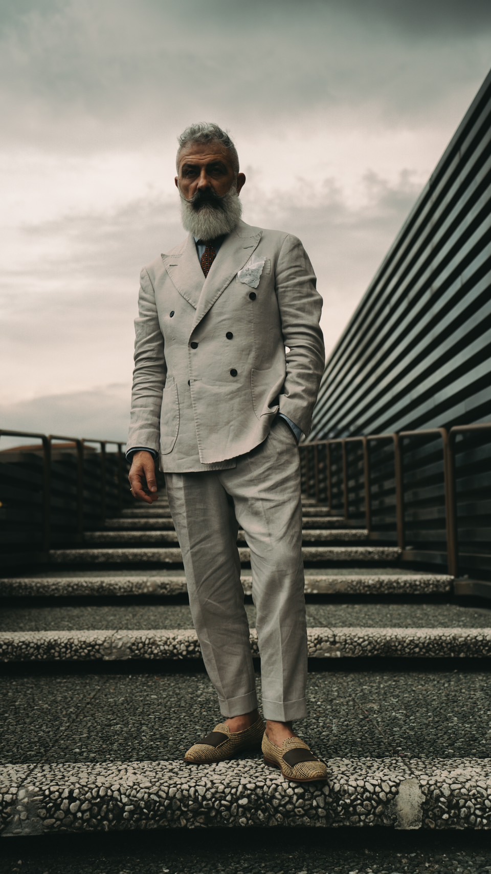 今回、ビンセントのスーツのイメージは「他とは違うリラックススタイル」にしました。こんな感じの一見悪そうな紳士が、リラックススタイルでスーツを着るのは、美しい日常のスーツのMICHELE&shinのスーツスタイルにバッチリ合います。