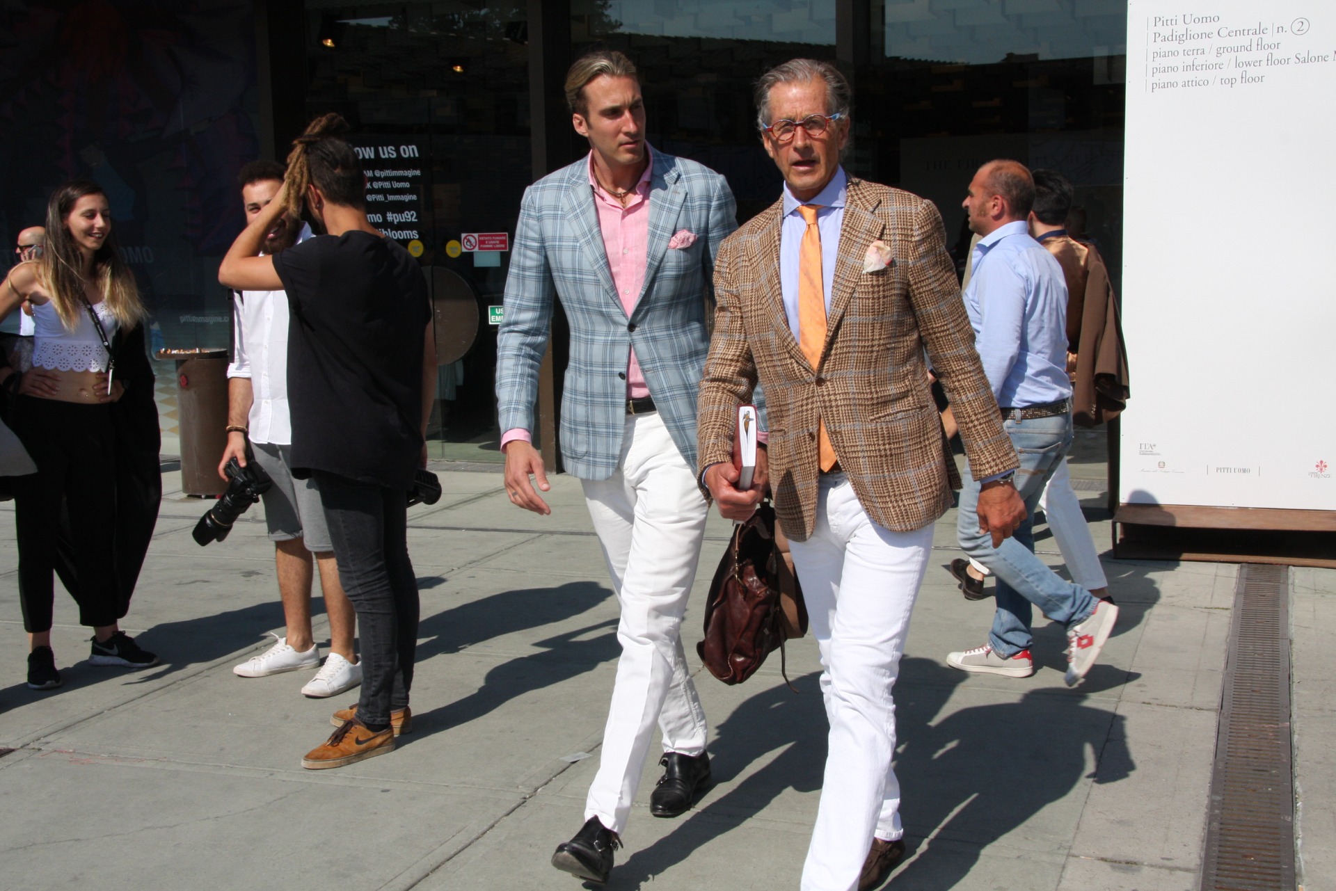 イタリア夏の紳士の着こなしと言えば、まさにこんな感じでしょう。この着こなしに、いつも通り何故か目を奪われます。